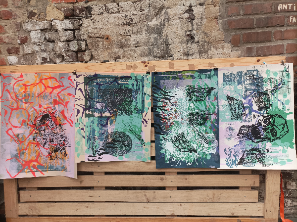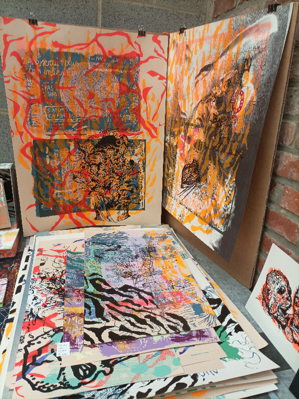 Hashët est un collectif d’artistes–militant·es actif·ves à Bruxelles depuis 2013. Leurs activités tournent autour de la sérigraphie, de la microédition et l’autoédition. Hashët c’est tout d’abord une philosophie de partage de l’image : les dessins produits sont libres de droit, iels pratiquent et valorisent l’esprit du DIY et de l’auto-diffusion. Cette philosophie guide la production de leurs sérigraphies : la mise en page se fait au fur et à mesure des passages et des couches, permettant de créer à l’infini. Iels souhaitent par dessus tout être au service de projets militants qui dénoncent le capitalisme, le racisme, le colonialisme, le sexisme, l’homophobie, la transphobie,…