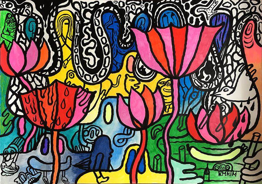 Kyoung-Mi Kim vit à Paris depuis 2012 et est enseignante en arts plastiques ; parallèlement elle est artiste indépendante.