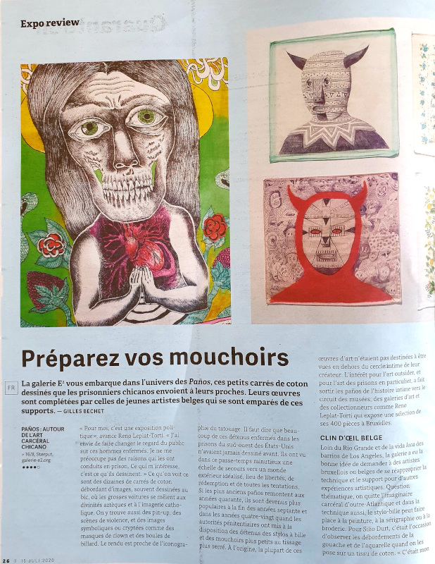« Paños – Art carcéral chicano », une exposition collective du 2 juillet au 16 août. Dessins sur mouchoirs.