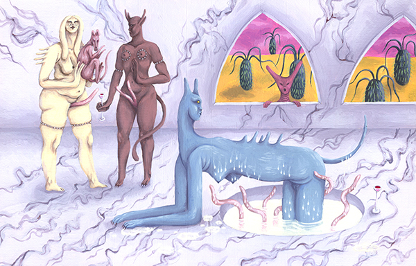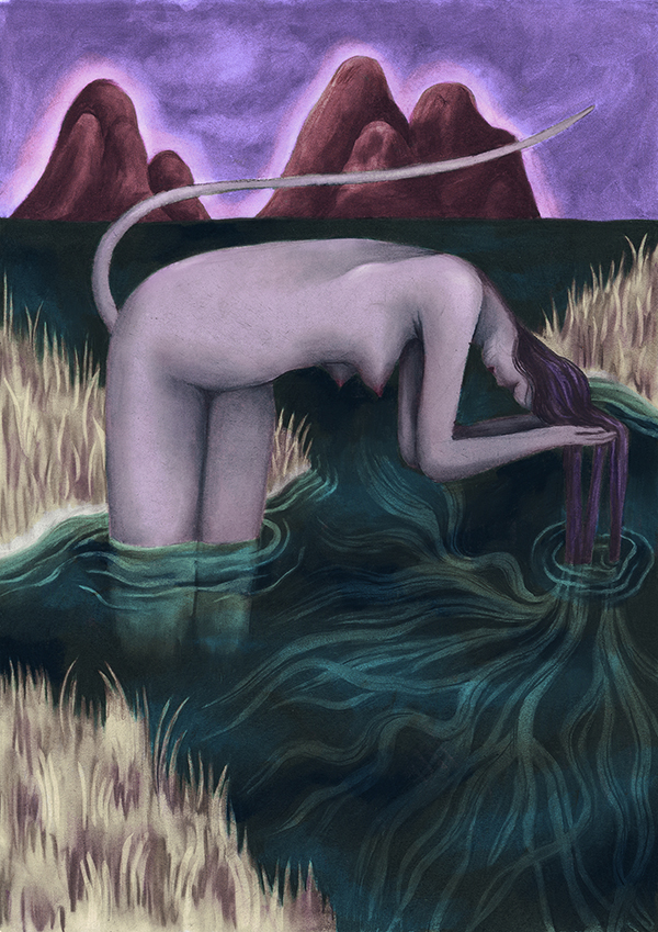 Régina Dargère est une artiste basée à Bruxelles. Née en 1990 en région parisienne, elle étudie l’illustration, la narration et l’impression traditionnelle à l’école supérieure d’art d’Epinal et obtient son DNAT en 2015. En 2016 elle fait une résidence au Vecteur à Charleroi avec un collectif de fresque et à l’Usine Utopik en Normandie quelques années plus tard. Elle s’installe finalement à Bruxelles où elle exerce son métier de tatoueuse à Rascasse. Elle pratique aussi la sculpture et l’illustration. Son travail se nourrit des arts premiers, des peintures médiévales et de la culture de l’horreur, de l’héroic fantasy et de la science-fiction. La forme et le trait sont au cœur de son travail, s’exprimant par un bestiaire absurde figé dans l’instant.