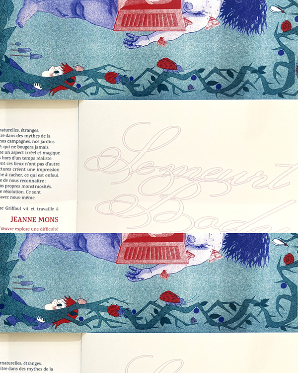 Morgane Griffoul : Le travail de Morgane Griffoul grouille d’esprits ensorcelants, de créatures surnaturelles, étranges. Elle s’attache affectueusement aux monstres hybrides, mutants, évolutifs, et les fait réapparaitre dans des mythes de la banalité : des scènes intimes et quotidiennes au cœur de nos maisons, nos jardins et nos campagnes. Ses images racontent une histoire qui n’a pas forcément de résolution. Ce sont des histoires de relations : celle entre deux créatures, celle avec nous-même et nos temporalités.