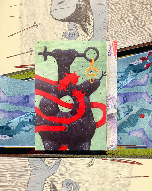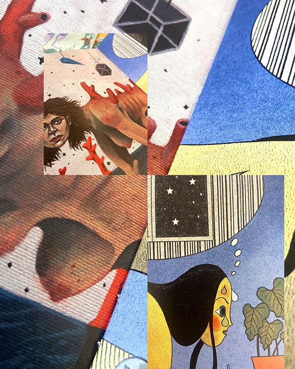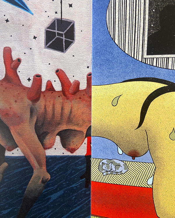 Chloé Burt : Chloé Burt est une artiste plasticienne multidisciplinaire diplômée de d l’ESAL de Metz. Elle développe dans ses créations une réflexion autour du rapport au corps de la femme. Ses œuvres sont ponctuées de figures monstrueuses qu’elle intègre dans des compositions symboliques aux accents surréalistes ce qui lui permet d’interroger notre regard ainsi que les conventions de la féminité dans les mondes de l’art.