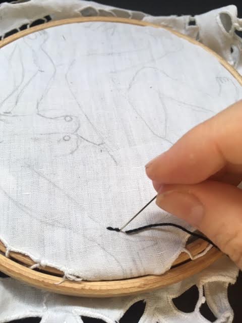 Atelier « mouchoirs anciens » animé par Lola Parrot.